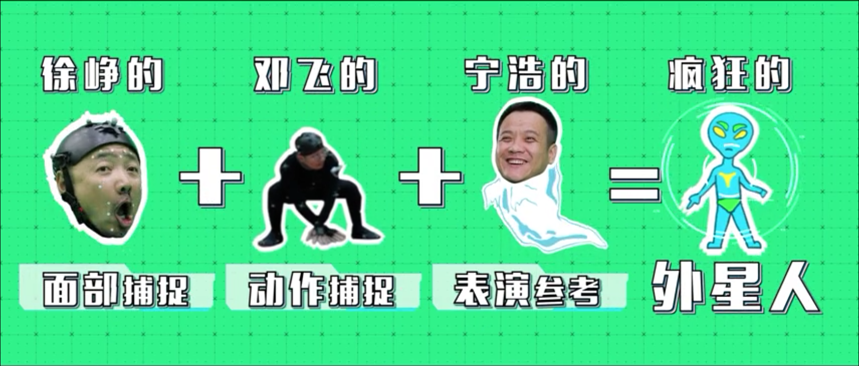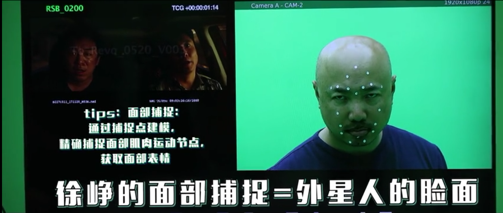 特别出演的徐峥通过自己表情出演,将外星人的傲慢、惊恐、愤怒以及和蔼的表情与情绪演绎得活灵活现。在Faceware的帮助下,所有的细微、夸张的表情都可以高效率的实时绑定在外星人模型的脸上,观众才能看到一个如此真实的外星人。