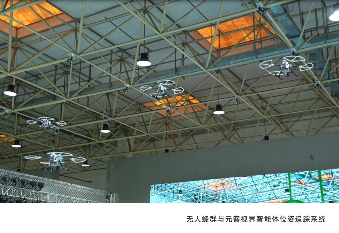 大会面向国内外高校、研究机构和企业,搭建一个集群智能创新挑战平台,在超过1200平方米的场地内全域覆盖元客视界智能体位姿追踪系统,使空地无人平台单机和集群在复杂任务场景下具备完备的虚实混合仿真功能,为无人蜂群的人工智能算法学习训练和验证评估保驾护航。