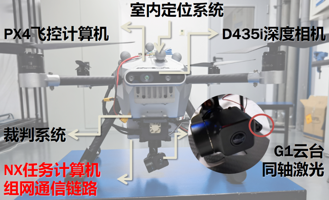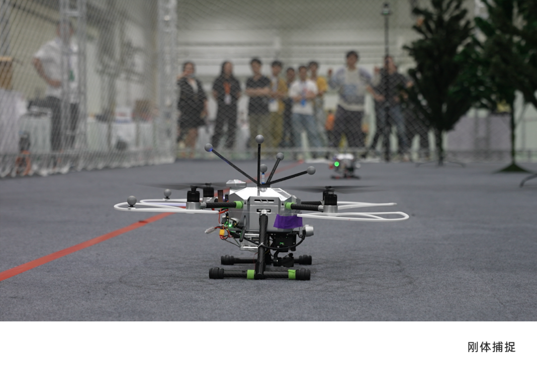 为了与真实使用环境保持一致,比赛采用室内定位系统,实时提供无人机位置数据。元客视界提供的光学动作捕捉系统通过捕捉无人机、无人车等目标物的反光标识点,实时解算并广播目标的当前位置和姿态,定位精度可以达到0.1毫米级。