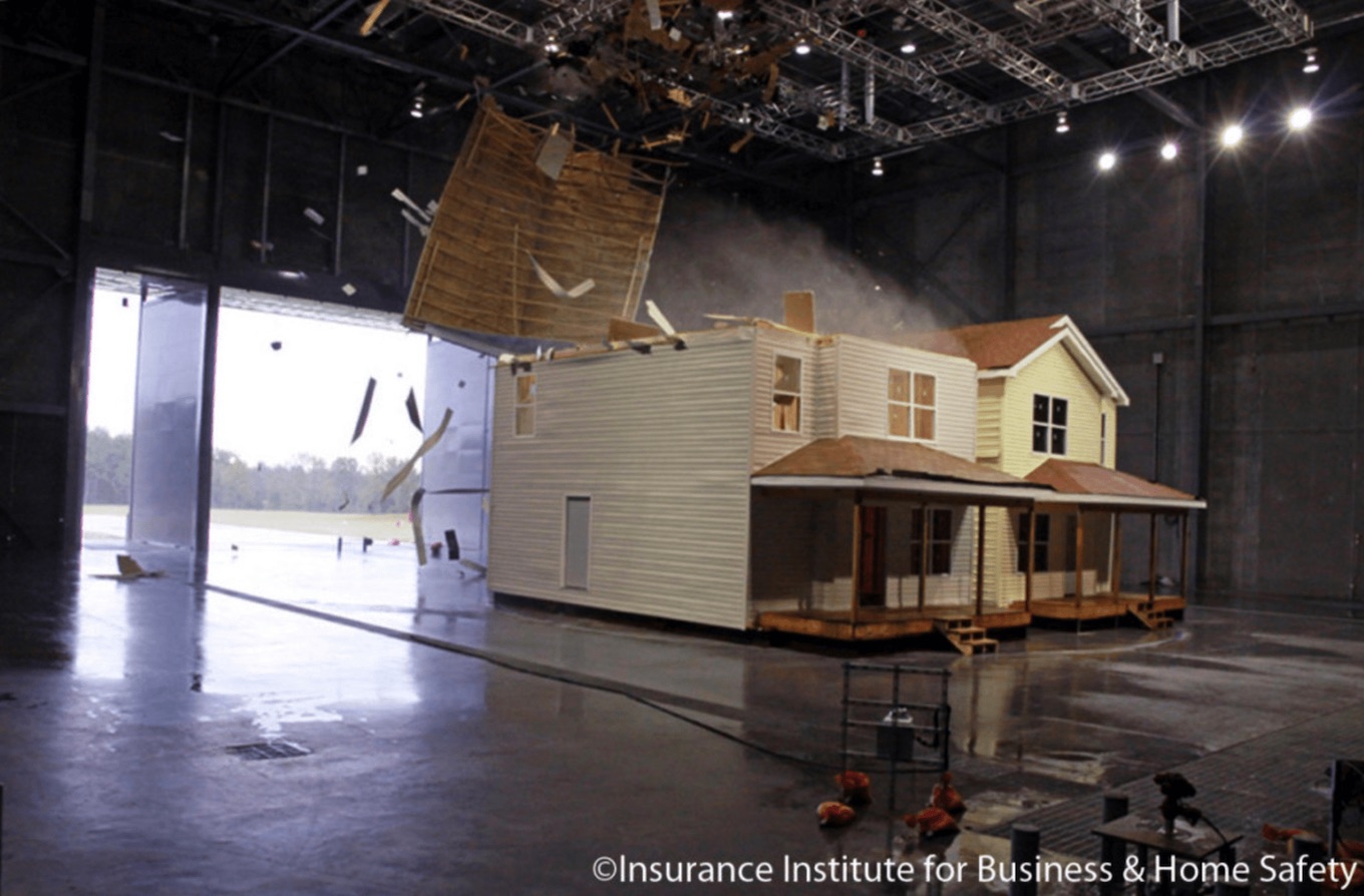 每年,飓风、森林火灾和其他自然灾害对当地居民和商务造成灾难性的损害,IBHS客观地测试了如何加固家庭及商业建筑来对抗这些不可预知的灾害。加利福尼亚南部的Chester镇是IBHS的研究中心,该中心是目前世界上仅有的进行该项测试的实验室——6层楼高、不到2000平米(44x44米)包含了全面气候测试能力的建筑,其中包含2层楼的民用住宅和商业建筑,实验室内可以模拟所有极端气候,包含强劲而真实的暴风、风雨交加气候、冰雹和森林火灾等。
