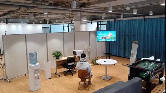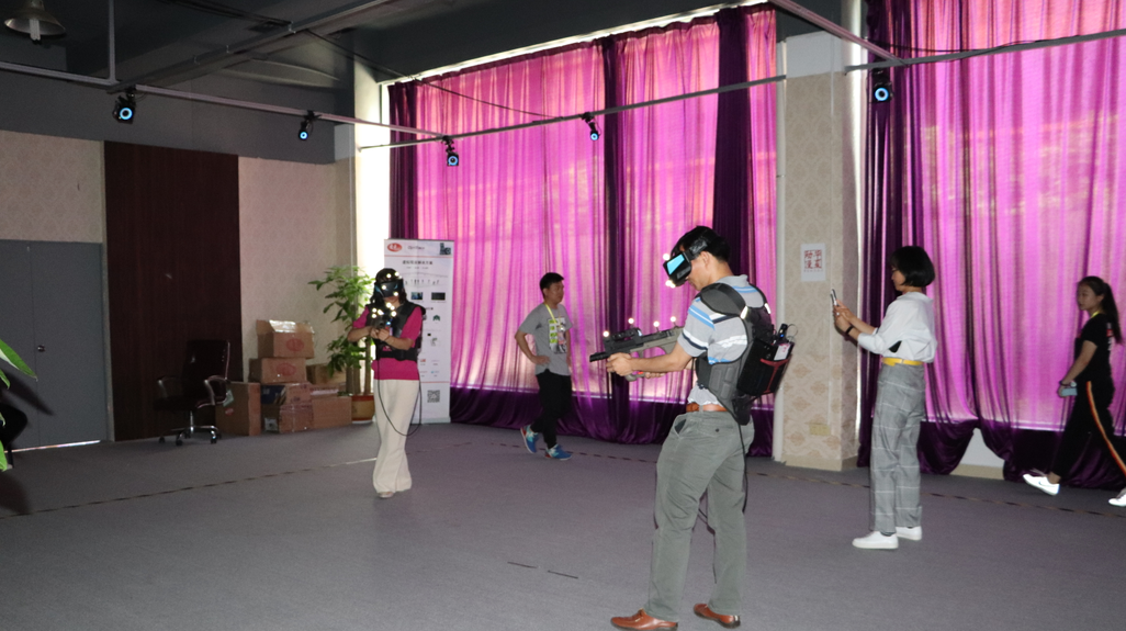 在项目规划初期,信游网光方案工程师采用VRSpace Designer软件模拟计算,最终推演出的这套VR大空间定位系统,使用60台130万像素的OptiTrack主动光动捕相机。经过精细化布局设计,实现全局空间内无死角跟踪。信游网光为索尼定制设计的主动式耳机追踪器,使其可以稳定地卡在耳机上方。采用了主动光编码技术,每个耳机追踪器实现同型结构可同时追踪,在保证美观性的同时也保证定位的精确和便捷。通过WiFi将每个耳机追踪器的位姿信息传输给与之对应的安卓手机,以便其在不同的位置能听到相应的听觉效果。